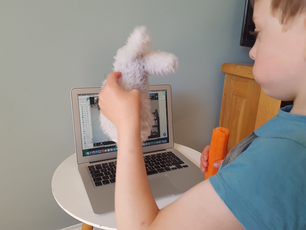 Songs are great way to connect and interact with others, even through a screen. Songs aren’t something we do in the gallery but have felt important to introduce into the online sessions. As participants are arriving all at once, rather than dropping in over a whole day, we felt it was important to have a clear beginning and end. We start with a ‘hello’ song and finish with a ‘goodbye’ song. This provides something that the children are familiar with, settles them into the session and captures their interest from the beginning. It also allows them to understand that the session is coming to an end.