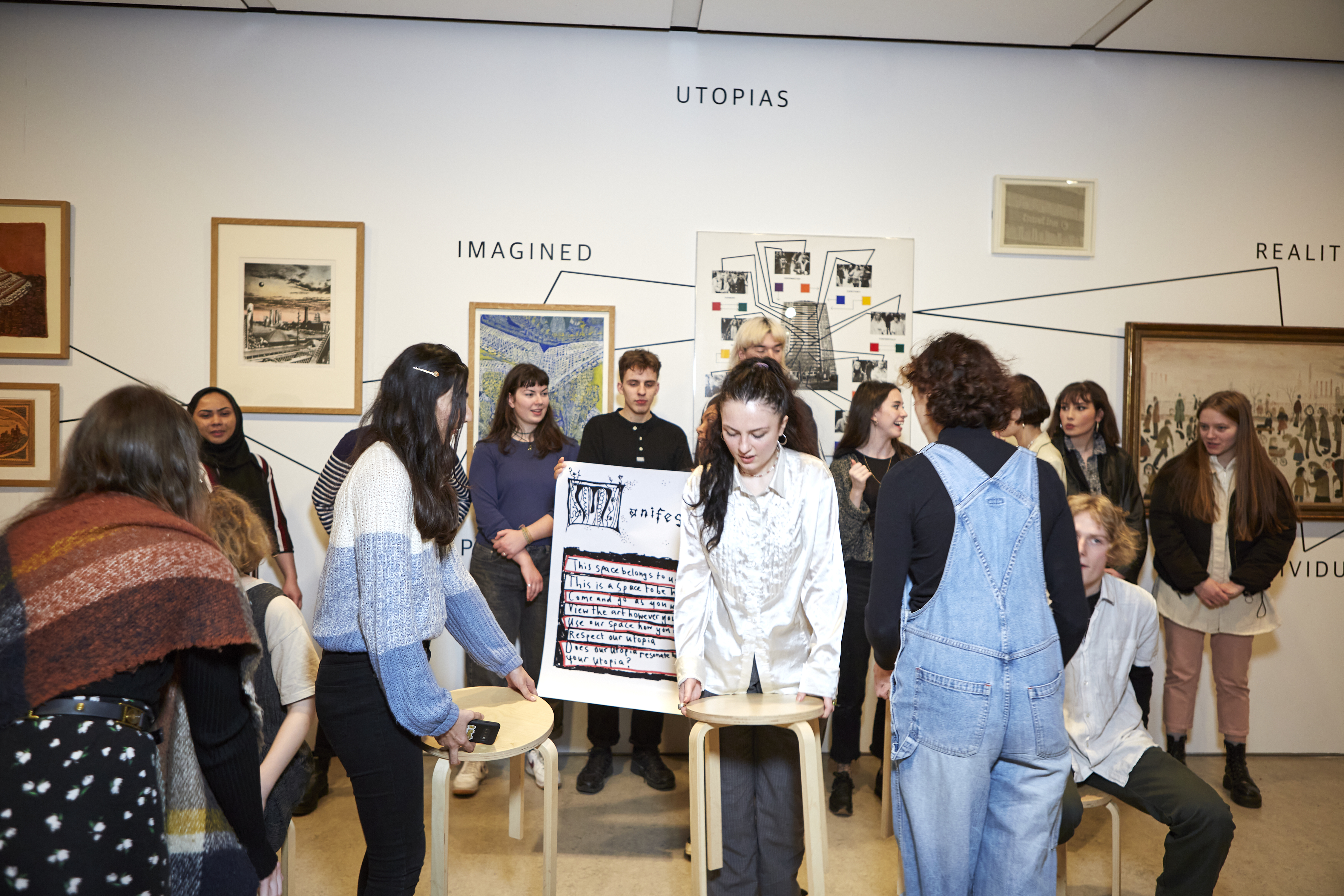Earlier this year, WYC curated an exhibition at the Whitworth that explored the theme of Utopia. Working with our WYC artists in residence and curator Leanne Green the young people spent many months creating a narrative for the exhibition and selecting artwork that told their story. They created a space that used the Whitworth’s collection to start a conversation on what utopian-thinking looks like for young people today.