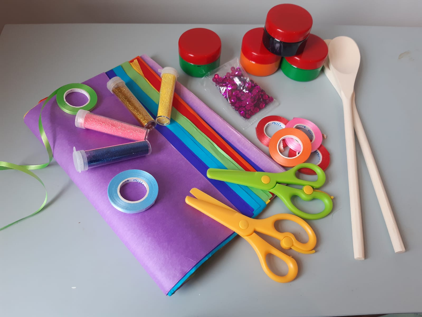 Creative Care Packages have been sent to each family which include paint, a range of craft materials and sensory objects like scarves and wooden spoons.
