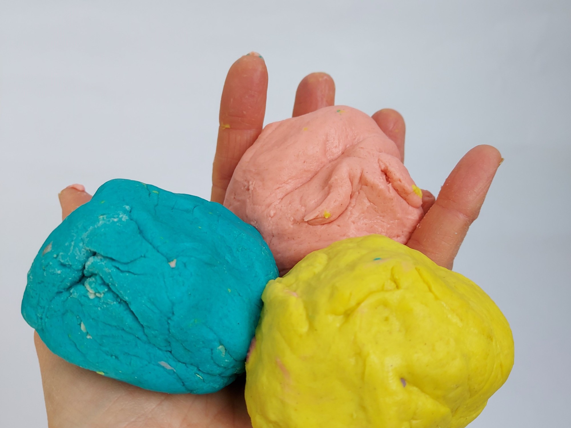 *Do not leave babies or children unattended when making or playing with the play dough and be careful with the surface/ clothing you use to play on as the food colouring may stain.