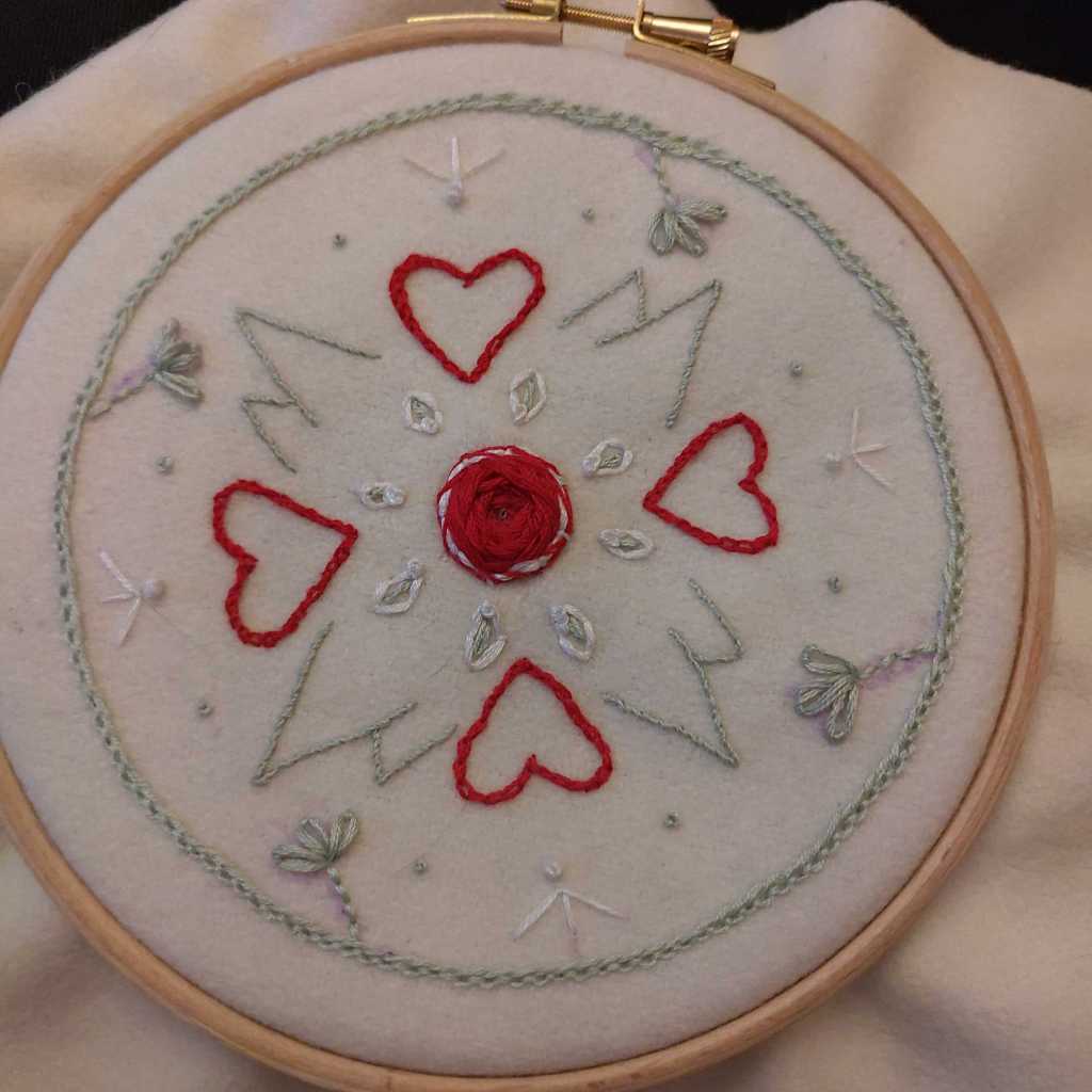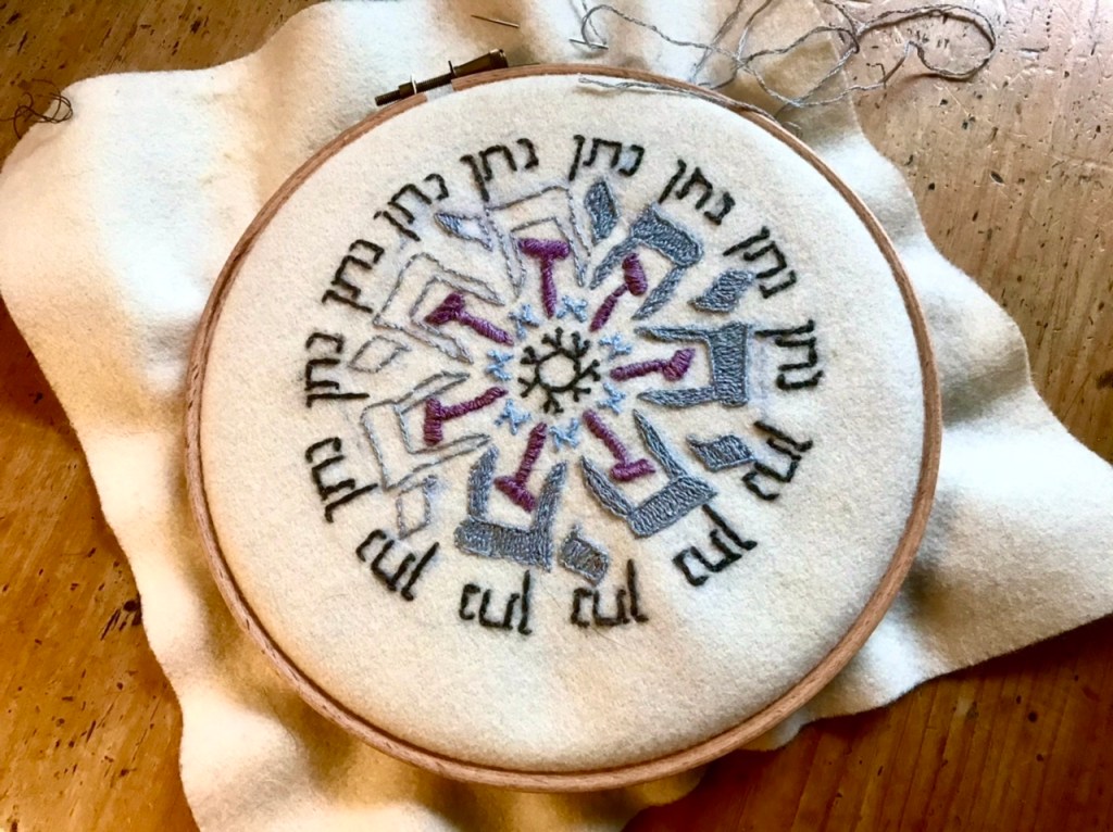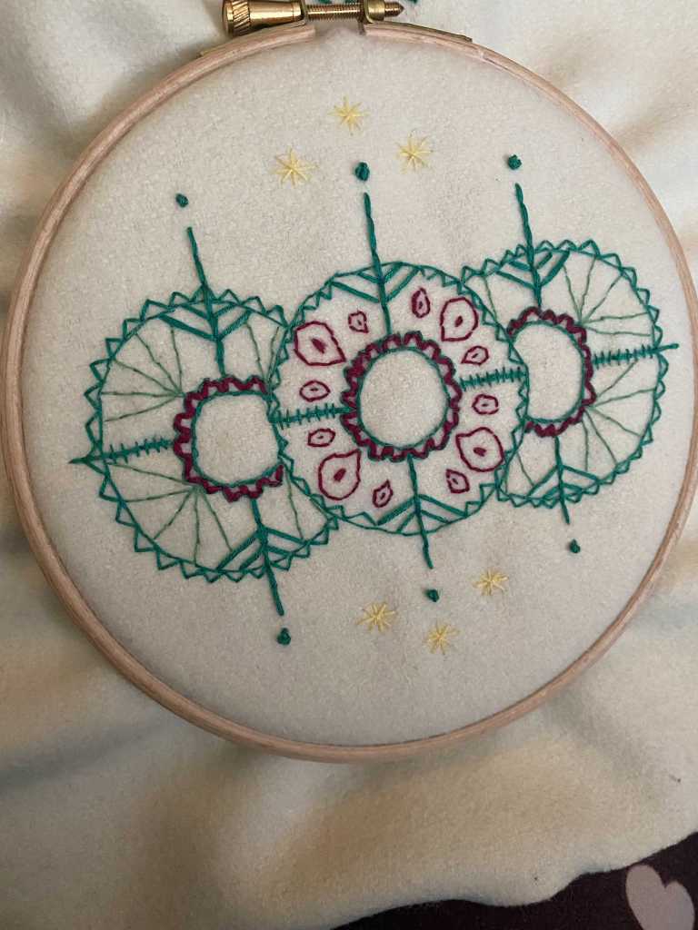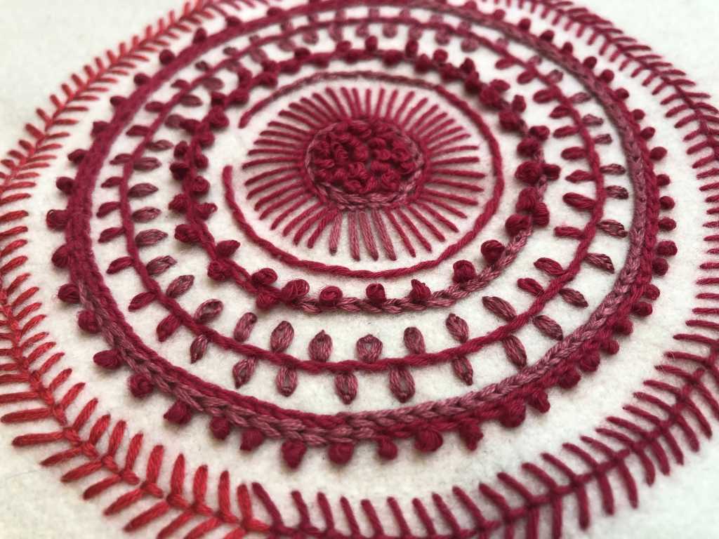 In April and May the Still Parents participants worked with embroidery artist Tabitha Moses. They designed mandalas, a Sanskrit word that means “circle”. Mandalas generally have one identifiable centre point, from which emanates an array of symbols, shapes and forms. The process of creating a mandala is very calming, a repetitive activity that helps calm and focus the mind.