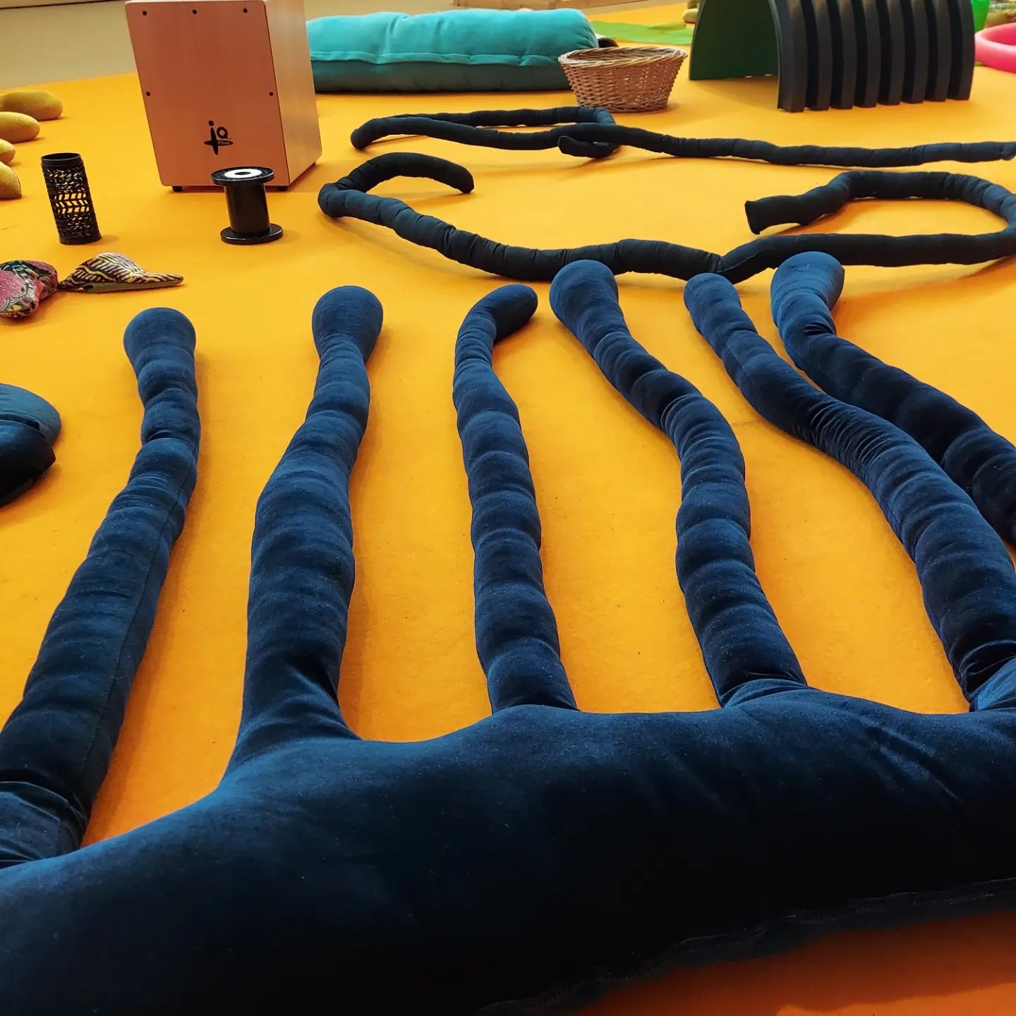 These objects explore and experiment with fabrics, pattern, textures, forms, shape, shadows, sound and smell creating emotive and immersive experiences for babies and their parents/carers. Sarah has used fabrics that she has collected from all over the world including India, Poland, Japan and China.