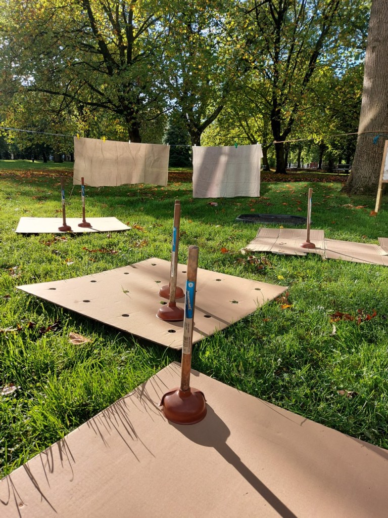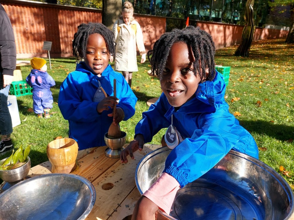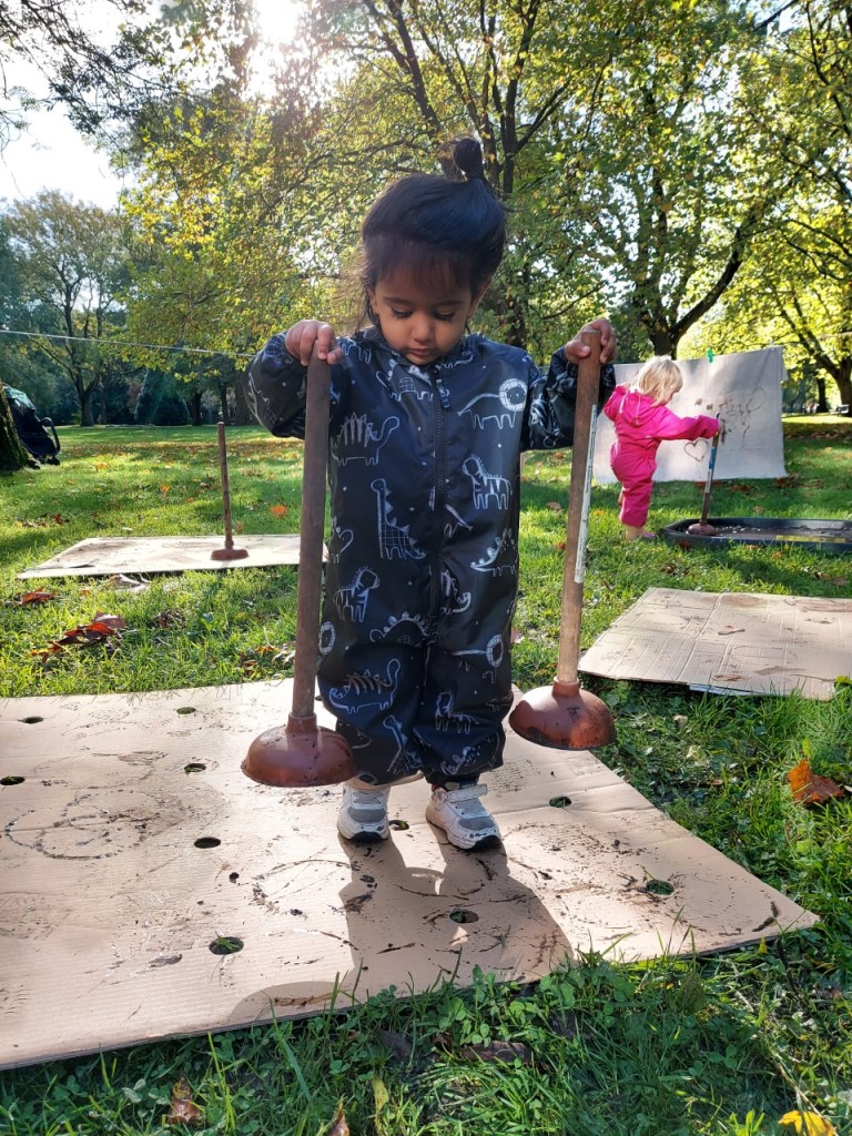 Outdoor Art Club sessions are designed so that children can move around the stations in their own time, playing and exploring at their own pace in a safe and enabling environment. All the activities are open-ended which means children get to choose their own activities with no pre-determined outcome. There’s no teacher, no instructions, just free play with inviting stations to stimulate exploration. The set up allows children to investigate for themselves, learning as they go.