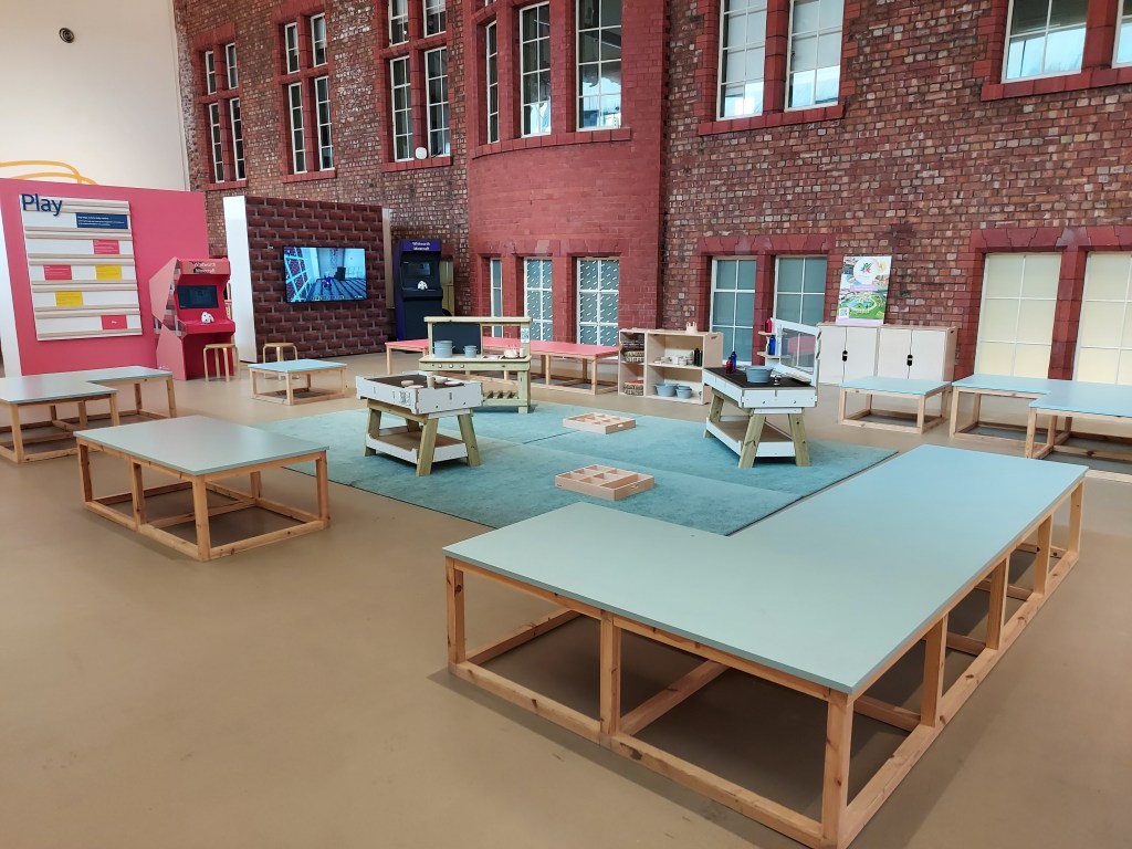 Our friends at Pentagon Play have kindly donated a range of play items and visitors to this space are invited to make and trade with each other. The resources chosen are intentionally open-ended so that children can let their imaginations run wild.