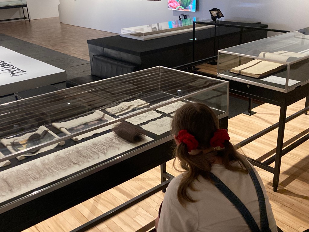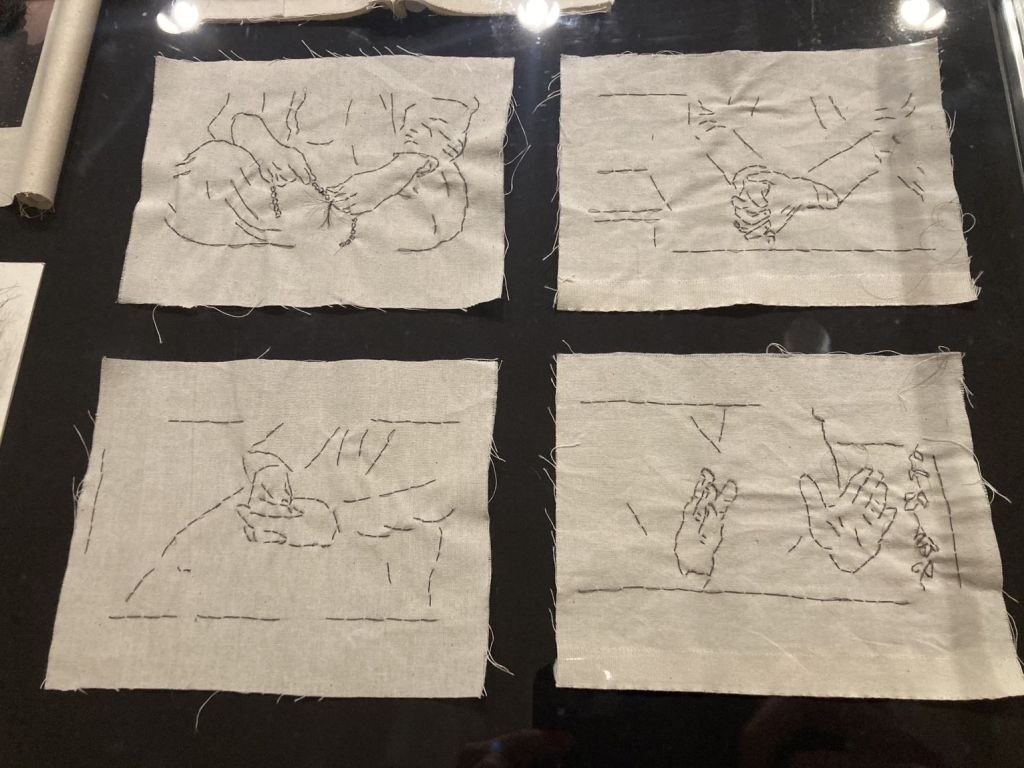 We had a tour of the exhibition with the curator Leanne Green, it was very interesting because some of my favourite pieces I wouldn’t really notice if I had not done a tour. I was really inspired by an artist called Kani Kamil who embroidered the hands of women. She found their pictures in an archive from Northern Iraq and her art protects their identities but still reveals a lot about how they might be feeling. I did my own version of Kani’s work by drawing pictures of my foster siblings hands and it really shows off their unique personality but also age and what they might be feeling.