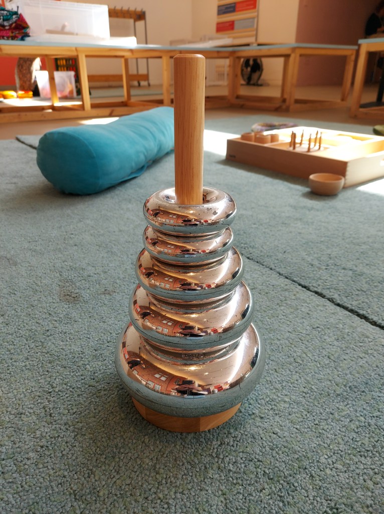 Stacking resources. For babies, picking items up and putting them in place helps them learn the important skill of intentional grasp and release, as well as how to control and position their fingers. The process of staking the ring on a post requires a lot of hand-eye coordination and focus that together boosts logical thinking and problem-solving skills.