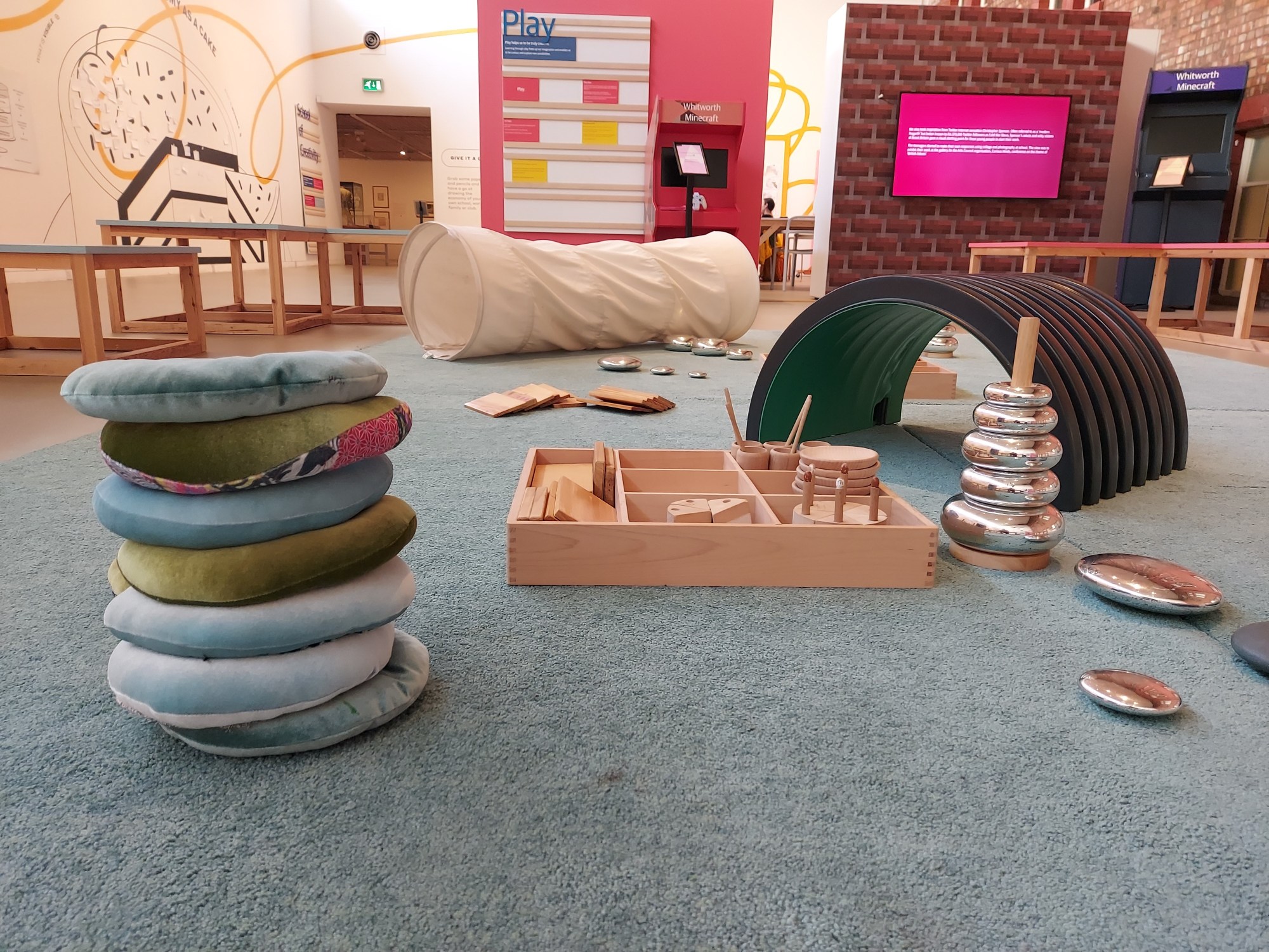 Firstly to set the scene. At the Whitworth we have a space on our Mezzanine floor called the School of Creativity. This space is an experimental, shared workspace for lifelong learning. We invite visitors to test out new ideas and develop new ways of doing things through making, play and learning together. It’s a constantly changing space – a place to celebrate creativity in all its forms.
