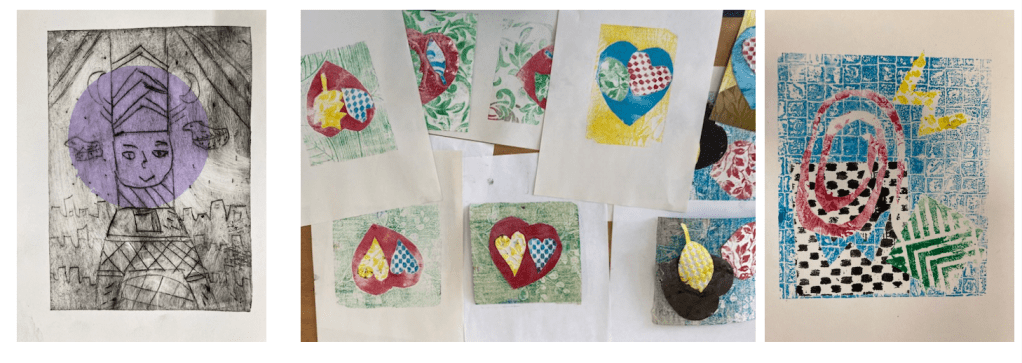 Years 3-5 spent 2 days printing with Alan working on relief prints and engravings. Year3 produced relief prints on the theme of Pop art which will be mounted as presents for Mothers Day. Year 4 and 5 used the work of Matisse and Chagall to produce engravings and relief print