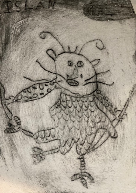 Printmaker Alan Birch kindly shares some of the prints produced by Year 4’s from Hursthead Primary School. The children connected to Santiago Yahuarcani’s ‘Beginning of Knowledge’ exhibition channelling their own creativity exploring myth and spirituality under the guise of creation. The Year 4’s produced their work through relief prints using a traditional printing press.